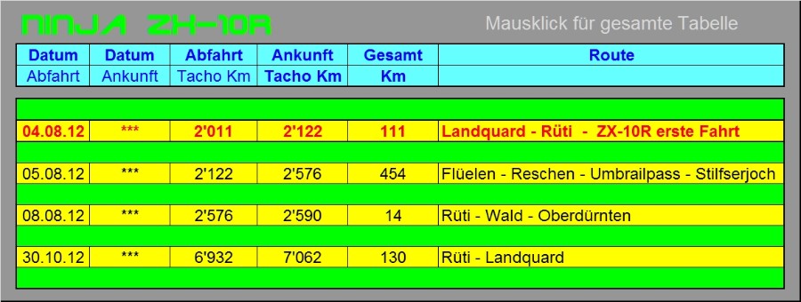 2012 mit der Ninja ZX-10R insgesamt 23 Touren gefahren  -  5 051 Km
