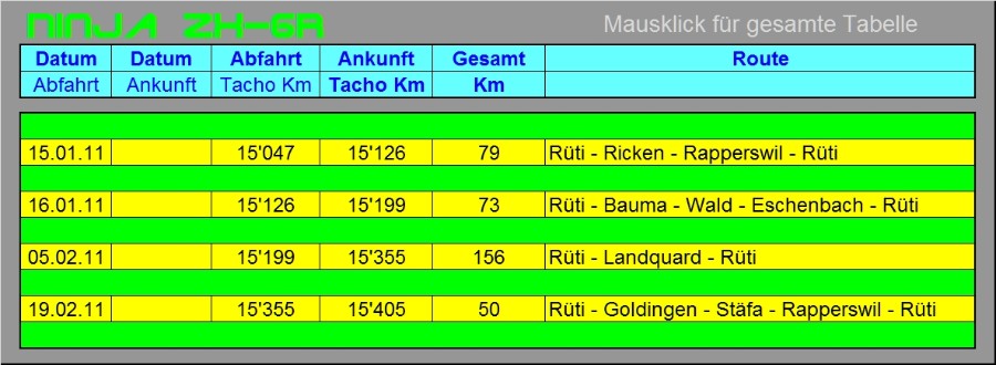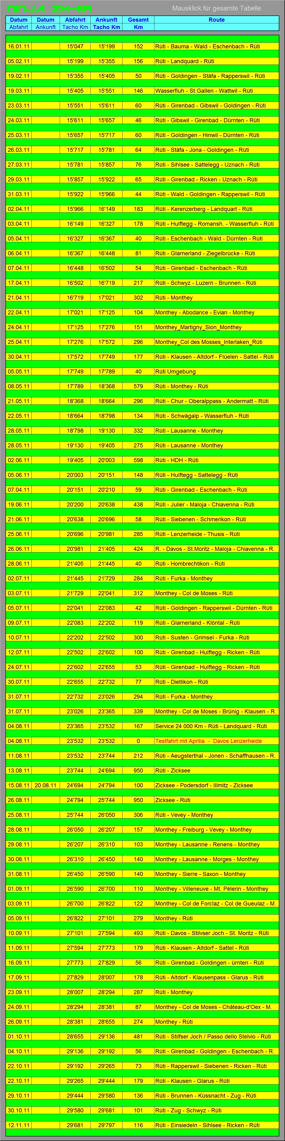 2011 mit der Ninja ZX-6R insgesamt 74 Touren gefahren - 14 760 Km