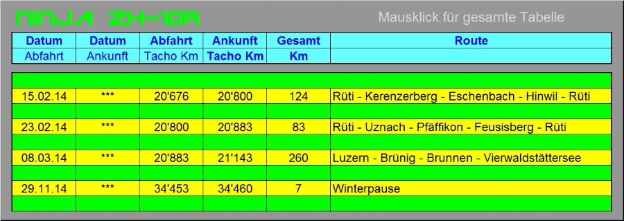 2014 mit der Ninja ZX-10R insgesamt 72 Touren gefahren - 13 784 Km