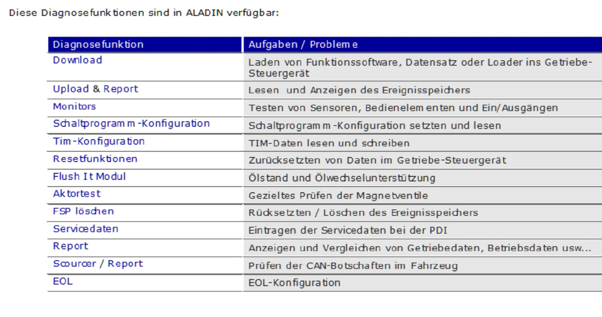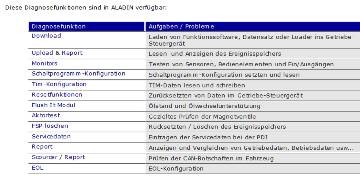 ALADIN 3 - DIAGNOSEFUNKTIONEN